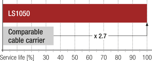 The hardened surface significantly increases the service life of the LS1050. Tests were carried out on cable carriers with identical designs.