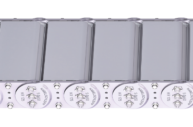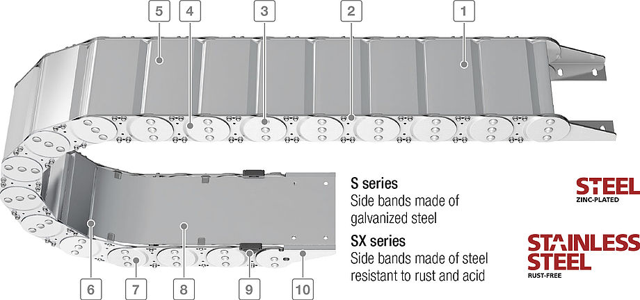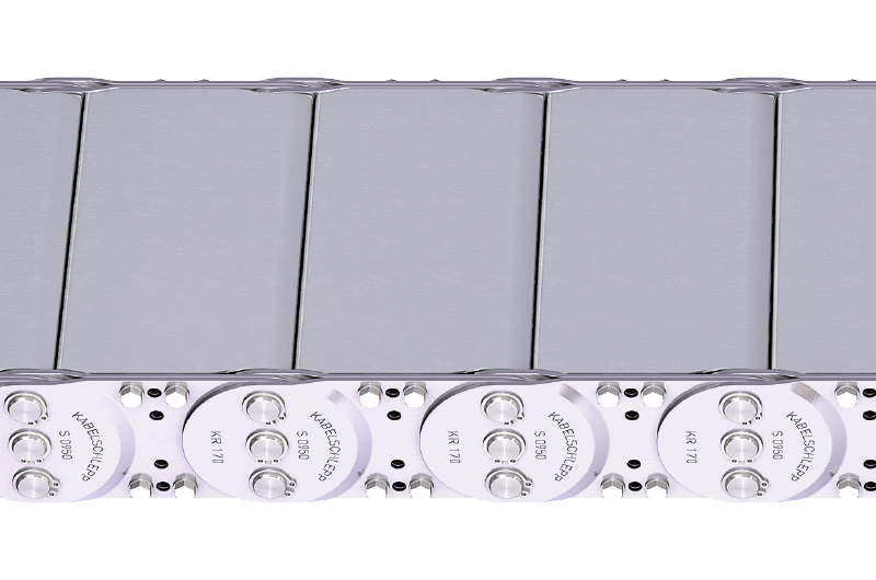 - Extremely robust, sturdy steel cable carriers for heavy mechanical loads and rough environmental conditions