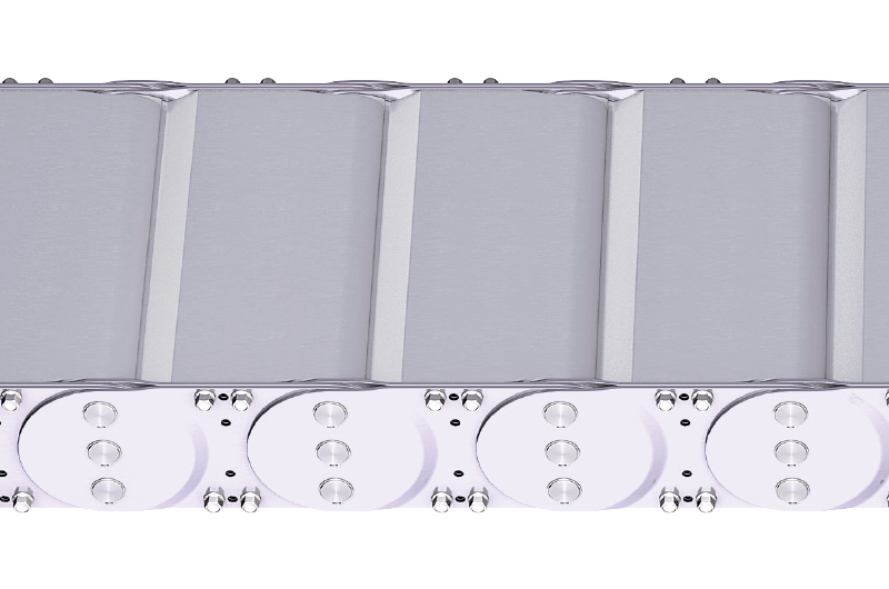 Proven steel cable carriers with extremely sturdy link plates and dedicated joint design with multi stroke system and hardened bolt. The extremely sturdy design allows extensive unsupported lengths and high possible additional loads.