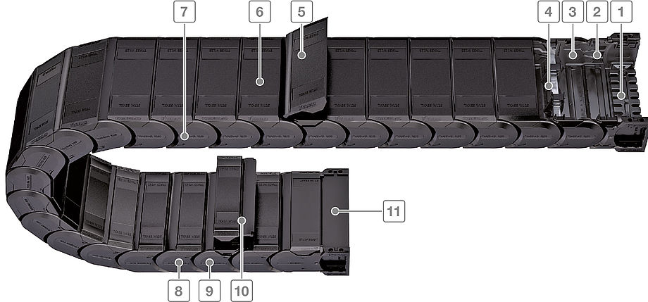 - Easy-to-open cover with simultaneously high retention force on the chain link during operation
