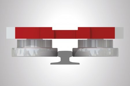 Guide roller systems enable low wear and exact guidance of wheels on rail track systems. Damping pads will be integrated into RFT guide roller systems to reduce impacts resulting from rail misalignments (patented system).