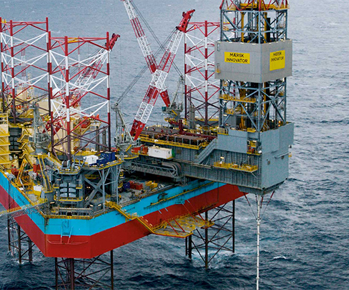 Jack-up rigs are used to search for oil and gas deposits down to a maximum water depth of 160 m. Tugboats or special transport vessels tow the rig to its drill location. The rig, which can often weigh as much as 30,000 tons, stands on three legs and can be jacked up. The rig is raised and lowered by in average 54 helical planetary gear units connected by pinions on racks. A high transmission ratio in excess of 7,000 and high torque are characteristic for FLENDER gear units.