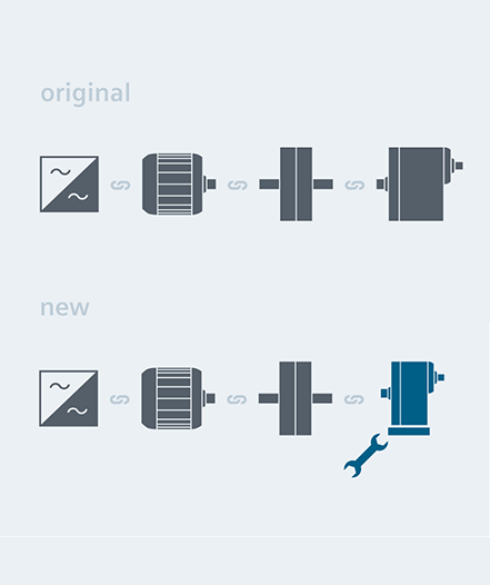 Often it is possible to replace legacy equipment with state-of-the-art products from FLENDER. In this case, best suitable gear units are selected from our current product range. If any modifications are necessary, these can be carried out at the FLENDER factory or on site. We are offering an option of extending the liability for defects period beyond the normal period.