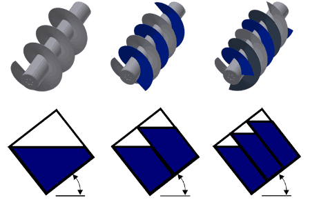 As you can see from the simplified sketch below: the lower the angle of inclination with the horizontal axis, the better the effective filling >ergo> the better the pump efficiency. However, when the required lift is rather high, we need to increase the angle in order to keep deflection of the screw within allowable tolerances.,Spaans Babcock has standardized angles at 30º, 35º and 38º. Other angles are possible on request or recommendation from Spaans Babcock but will always be between 22º and 40º.