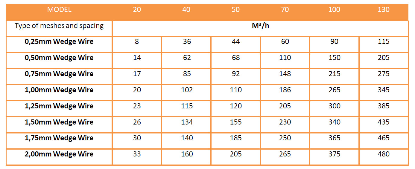 The drum is kept clean by the double passage of water and by high pressure wash and consists of perforated networks in wedge wire profiles and two side closures and inspected made of stainless steel.