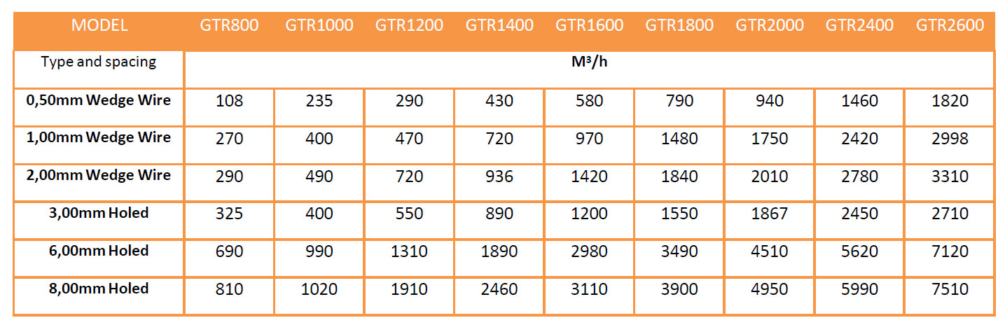 GTR – GTR-D – Theoretical flowrates