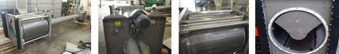 together, but it can be equipped with two separate gear motors (one for the screw rotation and one for the sieve rotation); this version is called GTR-D – DUAL ROTARY DRUM SCREEEN.