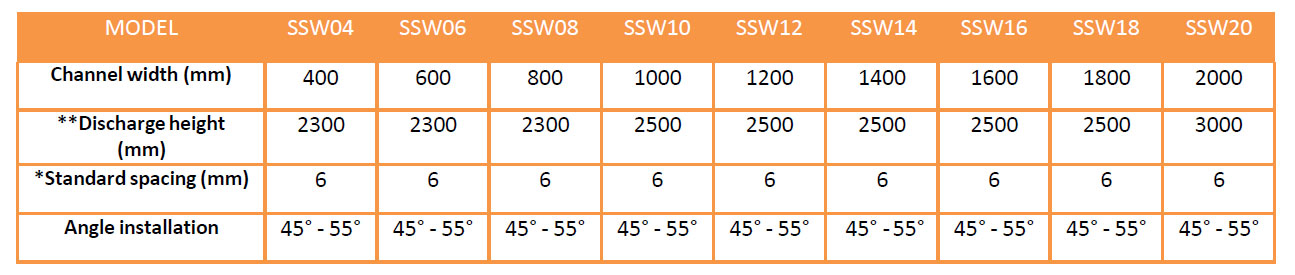 The SSW – STEP SCREEN is a great solution for medium depuration plants and it’s based too on the same constructive principles of the SMC – Multi Raked Bar Screen but with substantial differences.