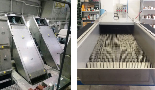 The machine has been created for a “in channel” installation with a 45° inclination until a 55° maximum and has a unique filtration system made by alternate fixed and mobile serrated lamellae.