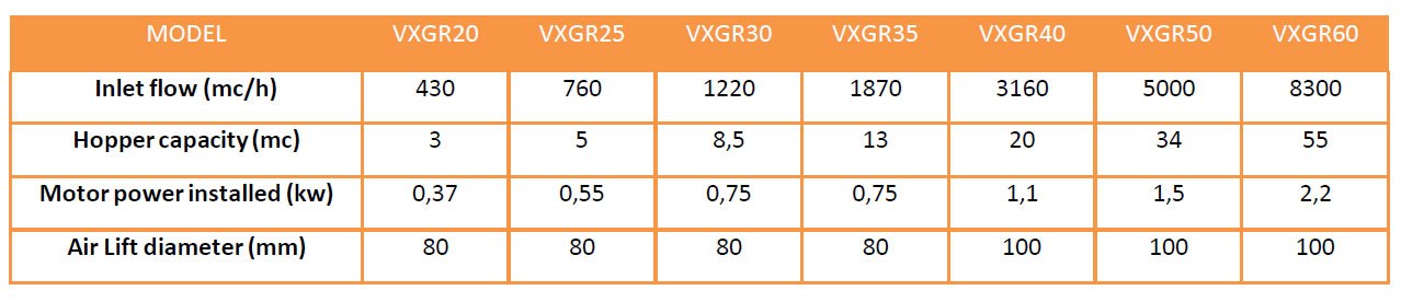 The VXGR – VORTEX GRIT SEPARATOR essentially it consists in a system of mixing shovels inserted into a concrete tank of generally realized before the installation in the plant.