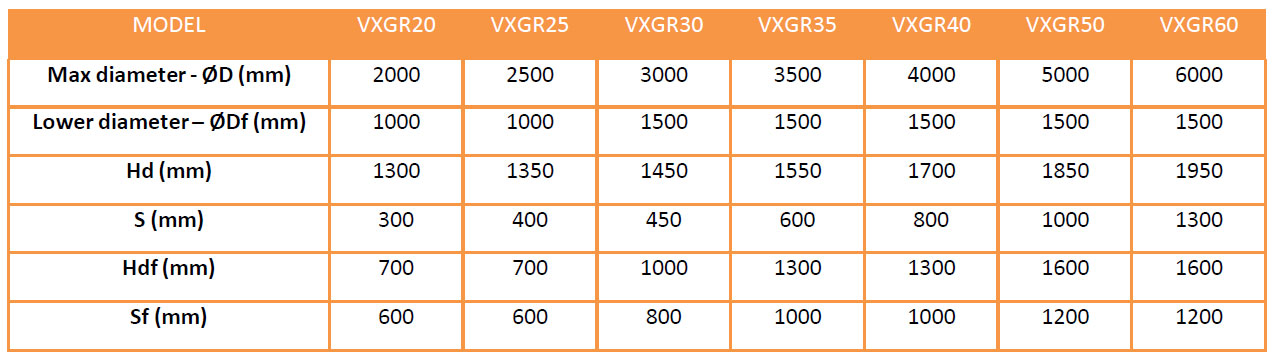 The VXGR series can be manufactured in Stainless Steel AISI304-316 (L), and are fully customizable according to the customer needs, but anyways we offer a standard range which can help the costumer in his final choose: